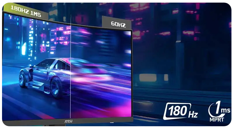 Gamingowe monitory MSI z matrycami VA LED charakteryzują się częstotliwością odświeżania wynoszącą 180 Hz oraz 1-milisekundowym czasem odpowiedzi matrycy. Dzięki tym parametrom mogą zaoferować istotne korzyści w grach, które zawierają szybkie, dynamiczne sceny, a więc w tytułach z gatunku FPS (First Person Shooter), wszelkiego rodzaju „bijatykach”, symulacjach wyścigów samochodowych, strategiach czasu rzeczywistego czy w grach sportowych. Gry te wymagają odwzorowania bardzo szybkich i precyzyjnych ruchów na ekranie, które to zapewnić mogą jedynie wyjątkowo wysokie częstotliwość odświeżania ekranu oraz niskie czasy reakcji matrycy monitora. To właśnie dzięki nim, gracz może podczas rozgrywki z łatwością pokonać swoich przeciwników.