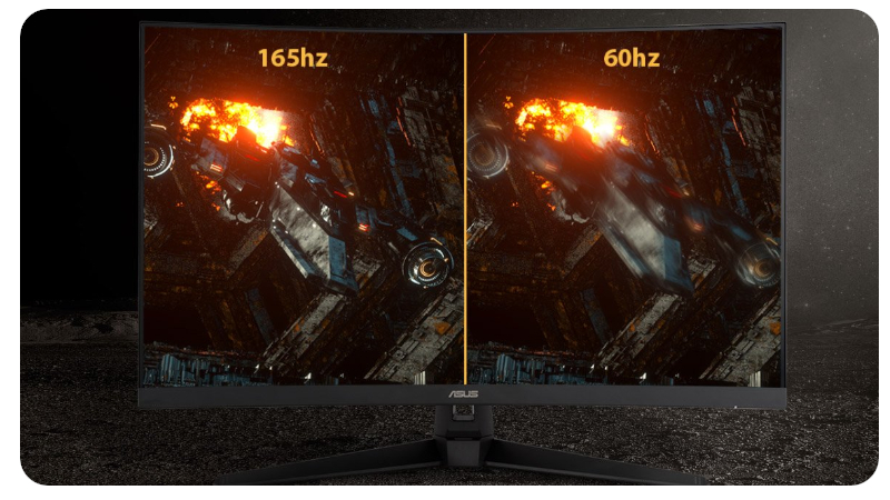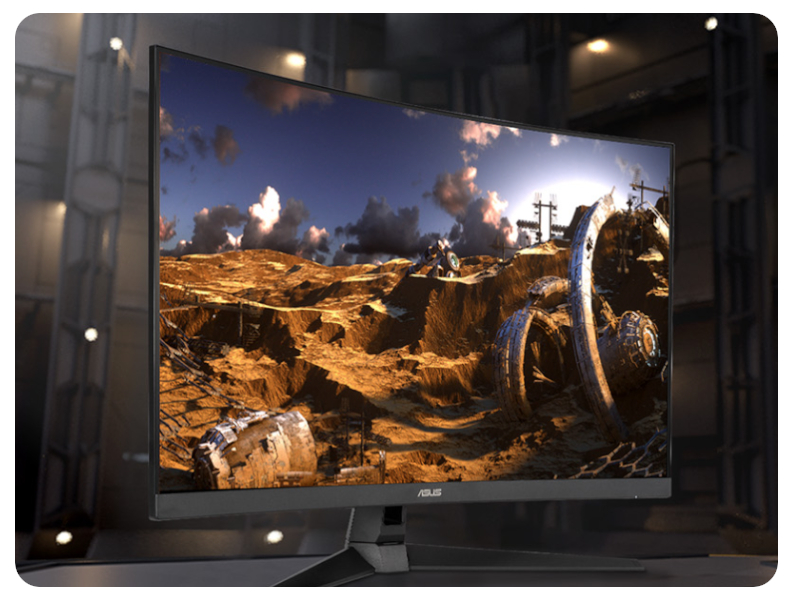 TUF Gaming VG328H1B to 31,5-calowy, zakrzywiony monitor Full HD (1920 x 1080) z ultraszybkim odświeżaniem ekranu 165 Hz, zaprojektowany z myślą o profesjonalnych graczach i użytkownikach wymagających immersyjnej rozgrywki. Wszystkie te specyfikacje robią oczywiście duże wrażenie, ale najbardziej ekscytująca funkcja oferowana przez VG328H1B nie została jeszcze wymieniona. Jego imponujący zakrzywiony wyświetlacz oferuje częstotliwość odświeżania 165 Hz oraz obsługuje technologię Adaptive-Sync (FreeSync™ Premium) – dla ekstremalnie płynnej rozgrywki bez efektów „tearingu” (rozrywania klatki) i „stutteringu” (przycinania płynności).