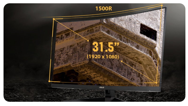 Zastosowana w monitorze TUF Gaming VG328H1B 31,5-calowa matryca Full HD (1920 x 1080) zapewnia oszałamiające efekty wizualne z praktycznie każdego kąta oglądania, a zakrzywienie 1500R gwarantuje, że każdy punkt na ekranie znajduje się w takiej samej odległości od Twoich oczu. Dzięki temu udało się zapewnić jeszcze większy komfort oglądania – nawet podczas korzystania przez długi czas – a Ty możesz cieszyć się oglądaniem nawet pod bardzo ostrym kątem przy mniejszym zniekształceniu obrazu i redukcji zmian koloru podczas grania i oglądania filmów.