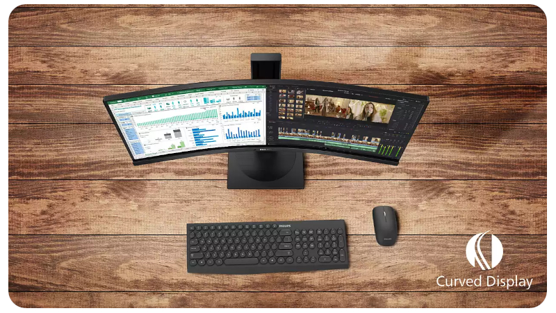 Zaokrąglona konstrukcja monitora Philips 34B2U3600C/00 o krzywiźnie 1500R zapewnia wrażenia, które całkowicie pochłaniają użytkownika. Optymalne zakrzywienie ekranu naturalnie dopasowuje się do pola widzenia, tworząc immersyjne, przyjemne i subtelnie otulające doświadczenie — idealne zarówno do pracy, jak i rozrywki. Delikatnie wygięty panel skupia uwagę dokładnie tam, gdzie powinna być: na Tobie i prezentowanej treści. Efekt? Pełniejsze zanurzenie w obrazie, większy komfort i wrażenia, które pozostają w pamięci na długo.