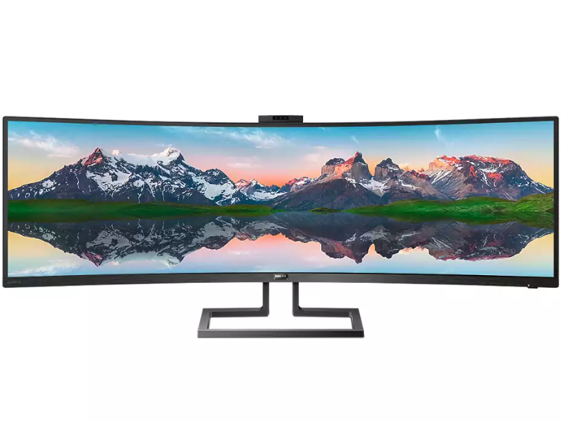 Peryferia i eksploatacjaMonitoryMonitoryMonitor zakrzywiony 48,8" Philips 499P9H | 5120x1440 (Dual-QHD) | VA | HDMIx2 DP USBC | Kamera | Głośniki