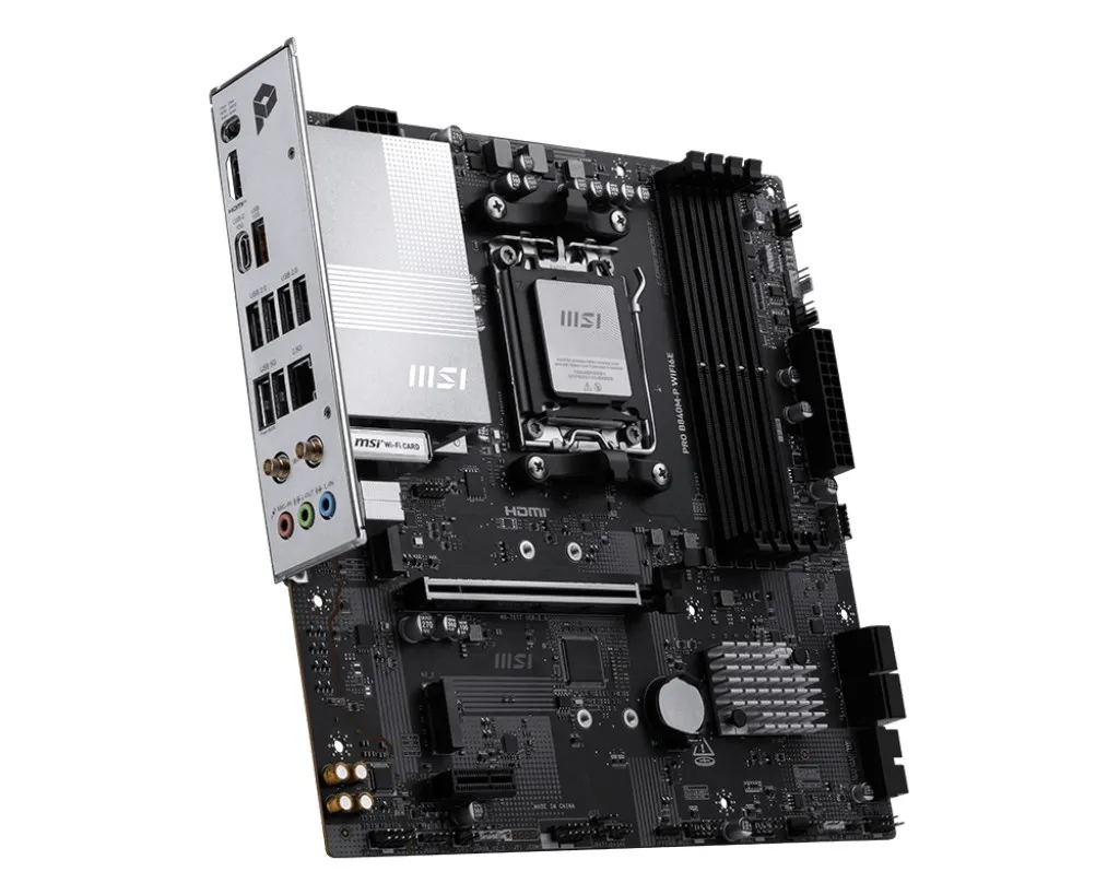 Obudowa PRO B840M-P WIFI6E oferuje prosty design z harmonijną, srebrną kolorystyką, która idealnie pasuje zarówno do białych, jak i czarnych komputerów. Została zaprojektowana z wieloma ekskluzywnymi funkcjami MSI, w tym Wi-Fi 6E z anteną EZ, kartą sieciową 2.5G LAN oraz gniazdem PCIe 4.0 M.2, a także jest gotowa na procesory AMD Ryzen serii 9000.