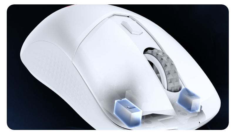 Symetryczna konstrukcja myszy zapewnia wyjątkową wygodę zarówno prawo-, jak i leworęcznym użytkownikom. Ergonomicznie zoptymalizowany kształt dopasowany jest do różnych rozmiarów dłoni i pozwala pewnie chwycić mysz zarówno pełną dłonią, koniuszkami palców, jak i zagiętymi palcami. Ten wszechstronna forma gwarantuje pewny i wygodny chwyt oraz precyzyjną kontrolę i wysoki komfort trzymania myszy w dłoniach podczas wielogodzinnej pracy lub rozgrywki.