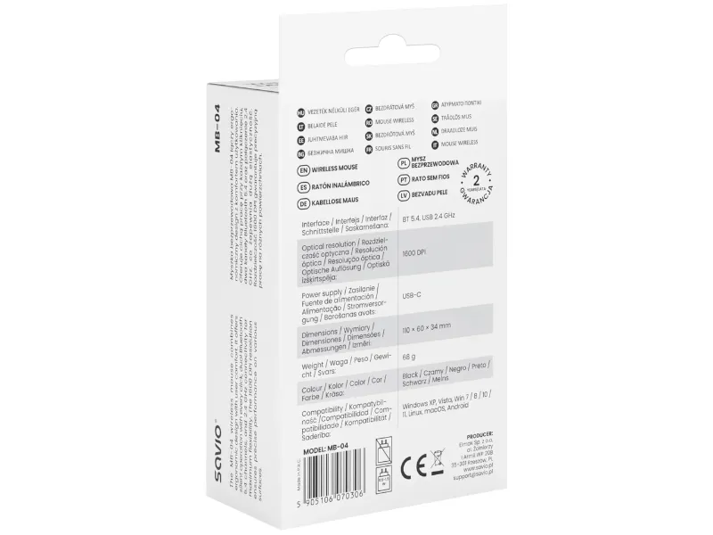 Mysz bezprzewodowa SAVIO MB-04 BT 5.4 USB-C 2.4 GHz 1600 DPI Plug & Play
