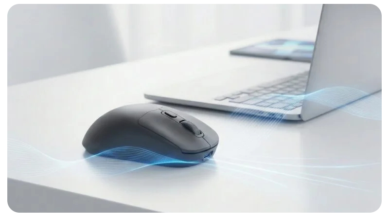 Zapomnij o plączących się przewodach i postaw na pełną swobodę pracy. Myszka wykorzystuje nowoczesny standard Bluetooth 5.4, który zapewnia szybkie parowanie, stabilne połączenie i mniejsze zużycie energii. Łączy się bezpośrednio z laptopem, tabletem lub smartfonem, nie zajmując żadnego portu USB. Dla komputerów bez Bluetooth w zestawie znajduje się miniaturowy odbiornik USB. Po podłączeniu działa w paśmie 2.4 GHz, gwarantując natychmiastową reakcję kursora i stabilny zasięg. Jedna myszka daje Ci pełną kompatybilność i swobodę wyboru.