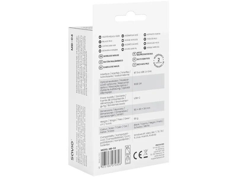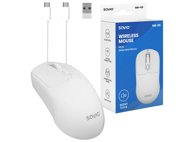 Mysz bezprzewodowa SAVIO MB-05, BT 2.4 GHz Biała