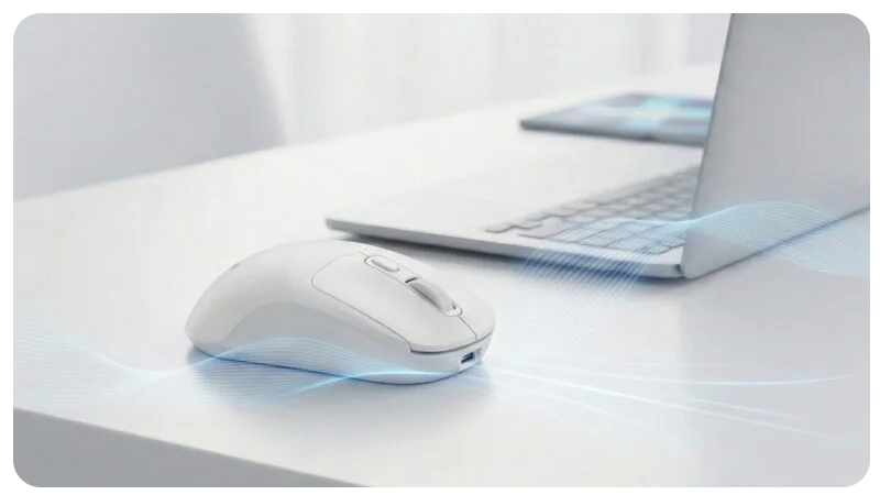 Zapomnij o plączących się przewodach i postaw na pełną swobodę pracy. Myszka wykorzystuje nowoczesny standard Bluetooth 5.4, który zapewnia szybkie parowanie, stabilne połączenie i mniejsze zużycie energii. Łączy się bezpośrednio z laptopem, tabletem lub smartfonem, nie zajmując żadnego portu USB. Dla komputerów bez Bluetooth w zestawie znajduje się miniaturowy odbiornik USB. Po podłączeniu działa w paśmie 2.4 GHz, gwarantując natychmiastową reakcję kursora i stabilny zasięg. Jedna myszka daje Ci pełną kompatybilność i swobodę wyboru.