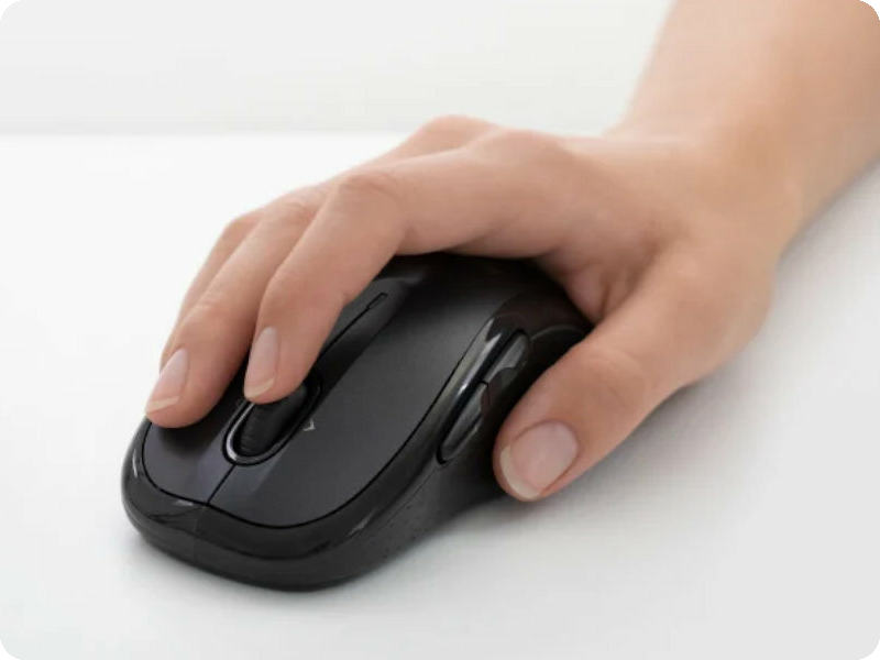 Dzięki łączności bezprzewodowej w myszce Logitech M510 zapomnisz o plątającym się kablu. Myszka łączy się z komputerem za pomocą małego odbiornika USB, który można podłączyć do dowolnego portu USB w komputerze. Niewielki odbiornik praktycznie znika w porcie USB komputera, co zmniejsza ryzyko jego uszkodzenia. Ponadto można łatwo dodać zgodną klawiaturę, klawiaturę numeryczną, a nawet inną mysz — bez konieczności podłączania wielu odbiorników USB.