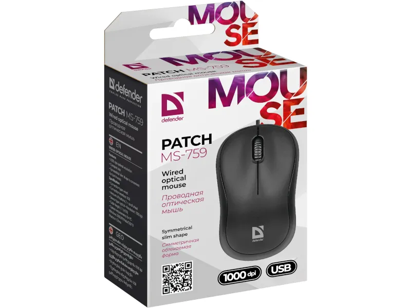 Mysz przewodowa Defender PATCH MS-759 Czarna 1000DPI
