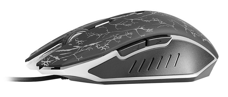 Myszka wyposażona została w 6 przycisków wraz z wygodnym przyciskiem do szybkiej zmiany rozdzielczości oraz funkcjonalną rolkę.