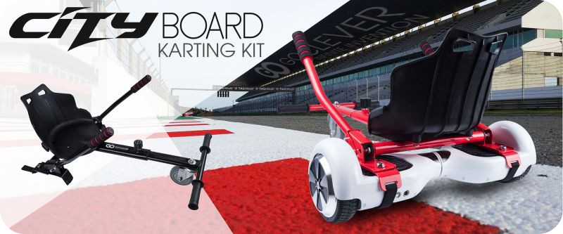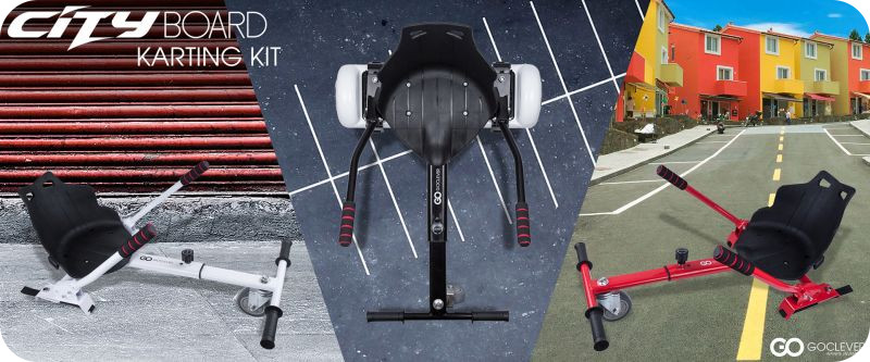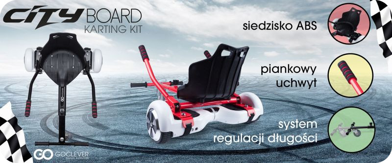 Urządzenie jest doskonałym rozwiązaniem dla osób, które szukają nowego sposobu na zabawę z deską elektryczną oraz dla tych, którzy dopiero rozpoczynają swoją przygodę z samobalansującymi deskami i boją się jeszcze na nich stawać „bez trzymanki”. Siedzisko urządzenia zostało wykonane ze specjalnie wyprofilowanego tworzywa ABS, które zapewni wygodę przez długie godziny zabawy. Mocna i stabilna konstrukcja, niewygórowana cena, gwarancja producenta to dodatkowe atuty, które sprawiają, że jest to idealny pomysł na prezent. CITY BOARD Karting Kit jest dostępny w 3 kolorach: białym, czarnym i czerwonym.