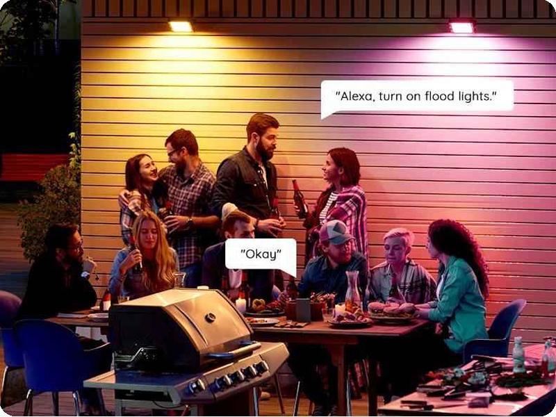 Zewnętrzne energooszczędne naświetlacze LED pozwolą Ci stworzyć niesamowite efekty świetlne na zewnątrz Twojego domu. Opatentowana technologia RGBIC pozwala na wyświetlanie do 16 milionów kolorów. Ponadto reflektory oferują białe światło o temperaturze barwowej od 2700 K do 6500 K, co sprawi, że oświetlenie Twojego domu może być bardziej naturalne. Urządzenie jest wyposażone w wodoodporne ochraniacze kabli i obudowę IP65, dzięki czemu nie straszne mu złe warunki atmosferyczne. Możesz łatwo sterować naświetlaczami za pomocą aplikacji Govee Home App, aby dopasować oświetlenie do swoich potrzeb, natomiast obsługa sterowania głosowego pozwoli Ci na wydawanie prostych poleceń za pomocą asystentów Google Home oraz Amazon Alexa.