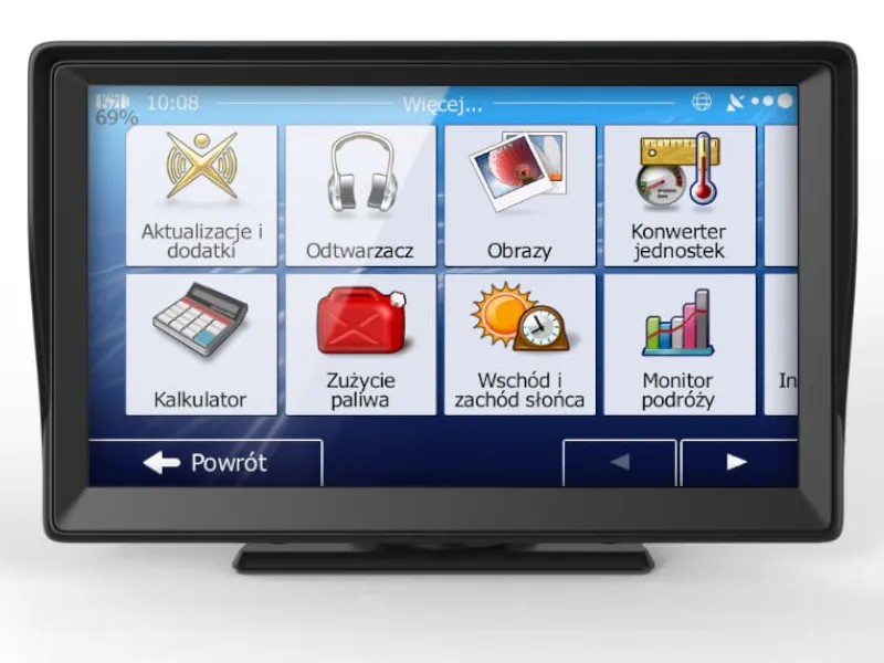 Dzięki wydajnemu procesorowi Cortex A9 MSB2531, pamięci RAM 512MB oraz wbudowanej pamięci 8GB urządzenie zapewnia płynną pracę. Dzięki zastosowaniu tak mocnej jednostki w tym urządzeniu nawigacyjnym, możesz błyskawicznie wyznaczyć trasę swojej podróży bez żadnych opóźnień.