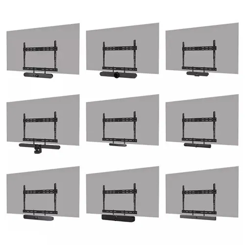 Zestaw AV30-500BL jest kompatybilny z większością wideobarów, kamer PTZ oraz soundbarów, w tym z głośnikami Logitech Rally, co gwarantuje szerokie zastosowanie. Otwory montażowe umożliwiają regulację szerokości i wysokości, a rama VESA jest regulowana w obu kierunkach (200 / 400 / 600 / 800). Zestaw można stosować z uchwytami ściennymi, podłogowymi, biurkowymi lub sufitowymi. Mimo dużej uniwersalności, montaż jest prosty i intuicyjny, a precyzyjne dopasowanie ułatwia wyrównywanie z użyciem linijki.