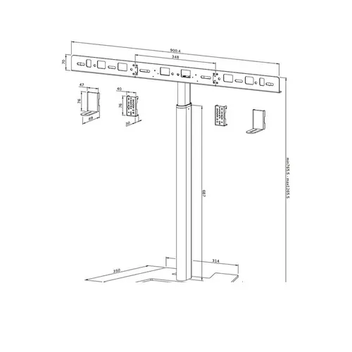 AV80-500BL jest kompatybilny z większością wideobarów, kamer PTZ oraz soundbarów, w tym z głośnikami Logitech Rally, oferując szerokie zastosowanie. Otwory montażowe umożliwiają regulację zarówno szerokości, jak i wysokości, a rama VESA może być ustawiona w czterech pozycjach (200/400/600/800).