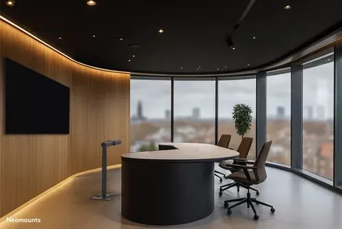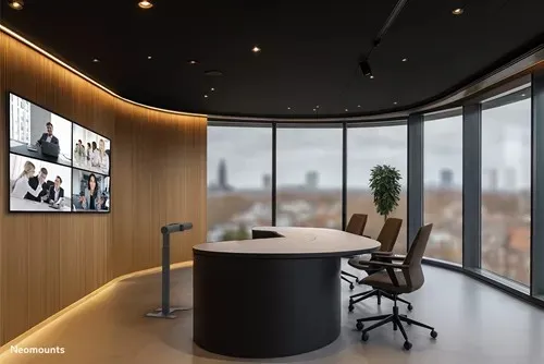 Neomounts AV80-500BL to uniwersalny podłogowy stojak na wideobar, zaprojektowany do obsługi urządzeń o wadze do 10 kg. Stojak można swobodnie ustawić w dowolnej przestrzeni, co zapewnia maksymalną elastyczność użytkowania. Regulowana wysokość sprawia, że idealnie nadaje się do sal konferencyjnych oraz pomieszczeń Microsoft Signature Teams Rooms z układem Front Row, gwarantując optymalną widoczność i profesjonalną prezentację.