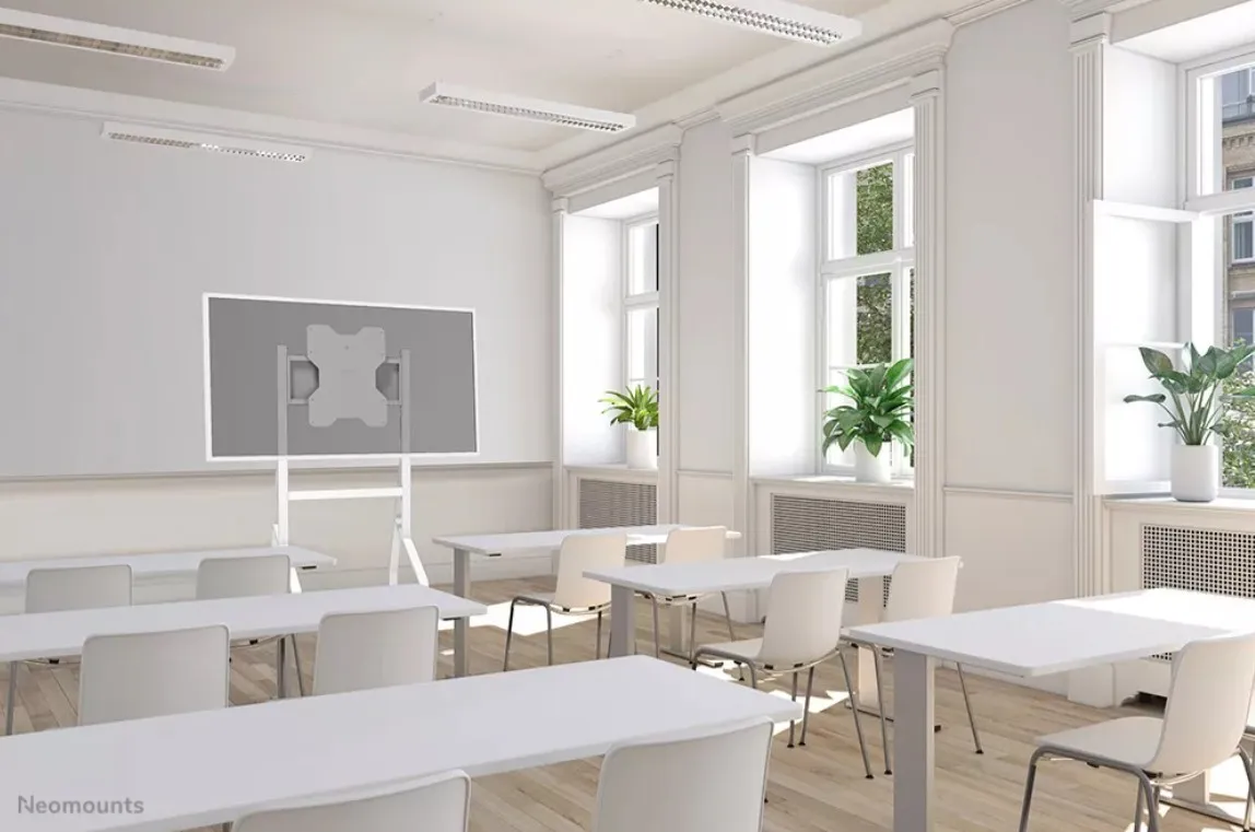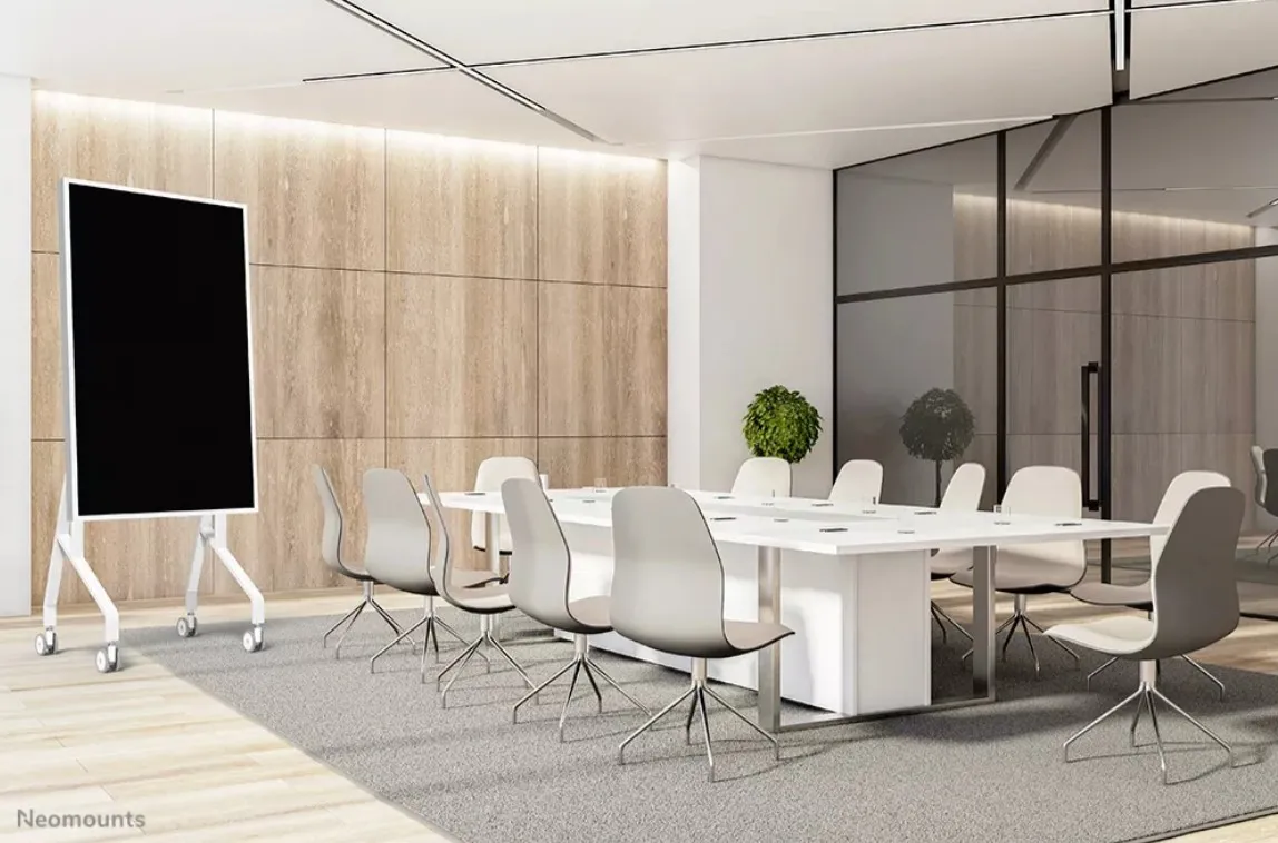 Neomounts MOVE Go Flip FL50-515WH1 to wysokiej jakości wózek zaprojektowany specjalnie dla wyświetlaczy Samsung Flip 55" i 65". Jego szybki obrotowy interfejs i wysokiej jakości design, idealnie pasujący do Samsung Flip, pozwalają użytkownikom poruszać się, dostosowywać i prezentować bez barier. Jest to idealne rozwiązanie do elastycznej współpracy w nowoczesnych salach lekcyjnych, salach konferencyjnych i dynamicznych przestrzeniach roboczych.