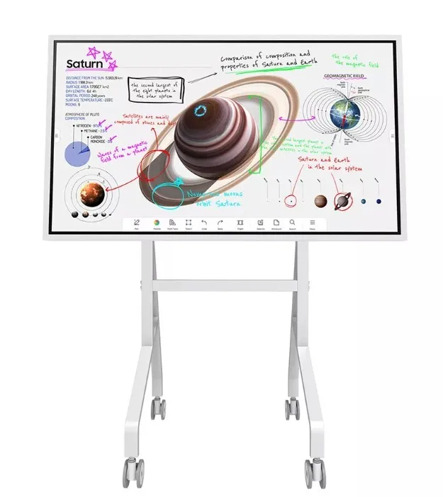 Jego elegancka i stabilna konstrukcja uzupełnia Samsung Flip 55" i Samsung Flip 65". Czyste białe wykończenie, solidna rama i zintegrowane zarządzanie przyczyniają się do schludnego i profesjonalnego wyglądu, który idealnie pasuje do każdego otoczenia.