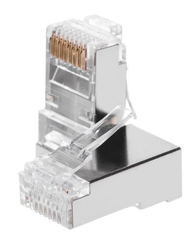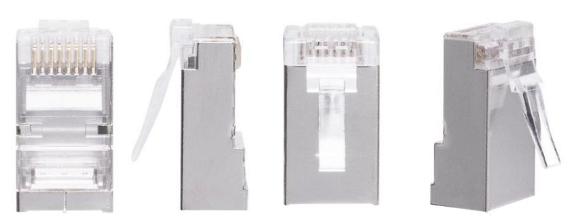 Wtyk typu 8P8C (8 pól i 8 styków), wykonany z poliwęglanu. Styki wykonane z fosforobrązu pokrytego złotem o grubości 6μm, przystosowane do przewodów typu linka. Wysoka odporność na ścieranie, wytrzymują wielokrotne użycie oraz prace w trudnych warunkach. Bardzo łatwy sposób podłączania ekranu- styk przylegający do przewodu.