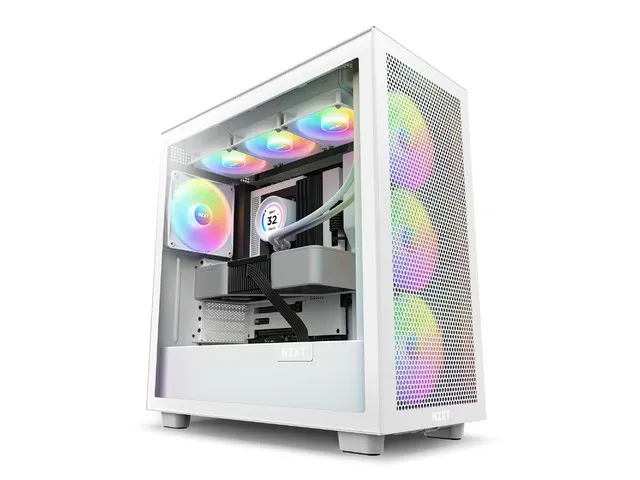 Rozświetl swoją obudowę, aby pasowała do Twojego stylu. H7 Flow RGB to doskonała obudowa dla każdego ambitnego konstruktora, dzięki wentylatorom RGB, które można podłączyć do 5 V ARGB, perforowanemu panelowi przedniemu i splitterowi, który zapewnia żywe działanie obudowy bez utraty wydajności.