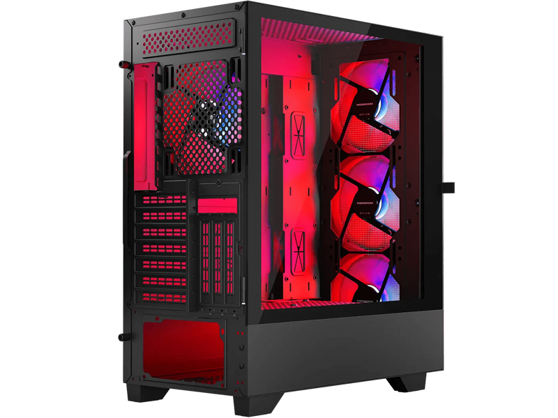Marzysz o wydajnym i dobrze działającym komputerze? To świetnie, ponieważ do Twoich wymarzonych komponentów możesz wybrać dobrą obudowę komputerową, jaką jest Modecom Siroco. W środku obudowy znajdziesz aż cztery 140 milimetrowe wentylatory ARGB, kontroler wentylatorów ARGB oraz praktyczne rozwiązania do budowy komputera. Nie brakuje tu przewiewnych paneli dla optymalnego obiegu powietrza, jest tu również masa miejsca na wysokie chłodzenie procesora oraz na długie karty graficzne. Obudowa Modecom Siroco jest świetnym wyborem do budowy komputera zarówno do gier, jak i pracy np. z wymagającymi mocnych komponentów programami graficznymi.