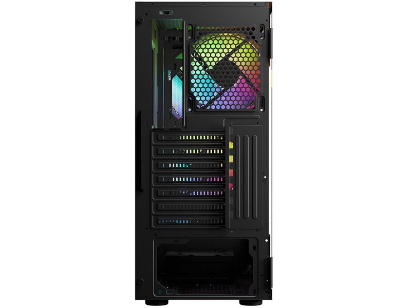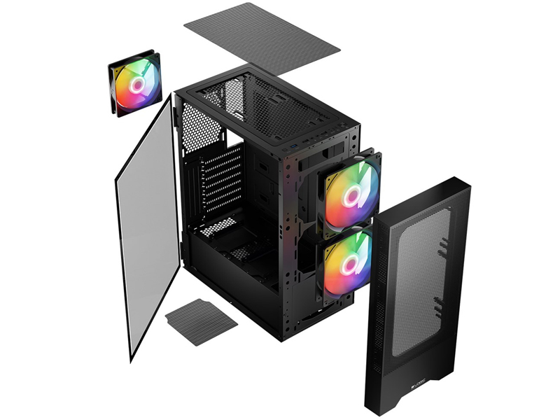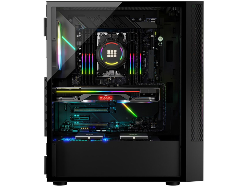 Panel boczny z hartowanego szkła Filtry antykurzowe Podświetlenie ARGB System aranżowania kabli Montaż zasilacza na dole obudowy |