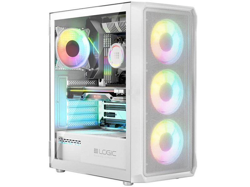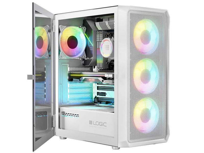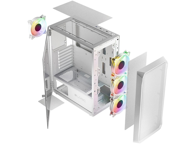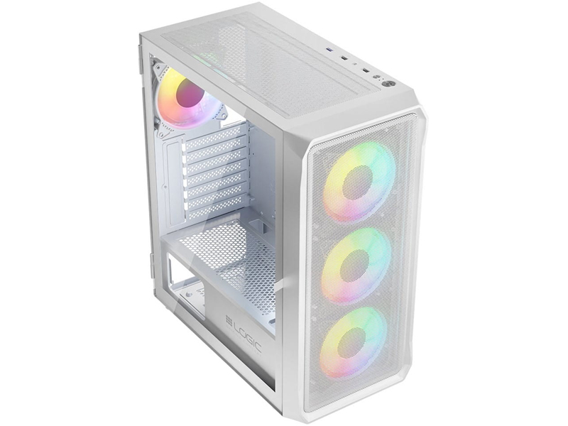 Obudowa komputerowa LOGIC PORTOS ARGB MIDI USB 3.0 Biała szkło hartowane 4 wentylatory 120mm ARGB