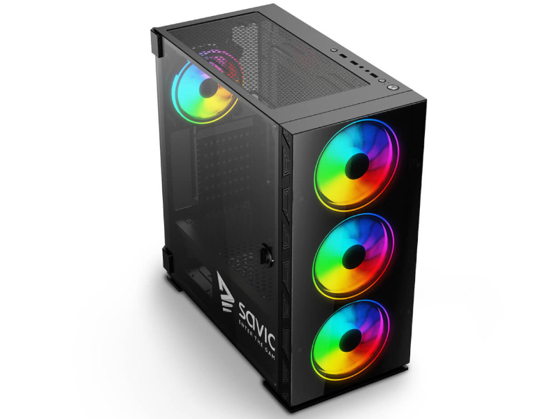 Obudowa Savio Prime X1 została wyposażona w aż 4 sztuki adresowalnych 6-pinowych wentylatorów ARGB o wymiarze 120 mm i prędkości 1200 RPM, które są doskonale widoczne przez dwa szklane panele. Trzy sztuki wentylatorów znajdują się zaraz za szklanym przednim panelem, natomiast jeden z tyłu obudowy. Wentylatory komunikują się za pomocą zaawansowanego kontrolera adresowalnego podświetlenia LED ARGB. Opcjonalnie w obudowie można zainstalować do 8 wentylatorów 120 mm.
