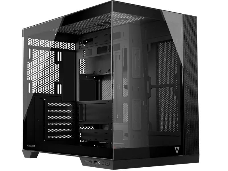 Volcano Panorama to dwukomorowa konstrukcja, która oddziela część serwisową wraz z zasilaczem montowanym pionowo od części właściwej komputera w której montowana jest płyta główna z podzespołami. Dzięki takiemu rozwiązaniu w jeszcze lepszy sposób wyeksponowane są najważniejsze dla graczy komponenty. Obudowa jest przystosowana do montażu standardowych płyt głównych jak i płyt z odwróconymi złączami. Specjalnie przygotowane do tego otwory na ściance montażowej płyty głównej dają jeszcze większą możliwość konfiguracji komputera.