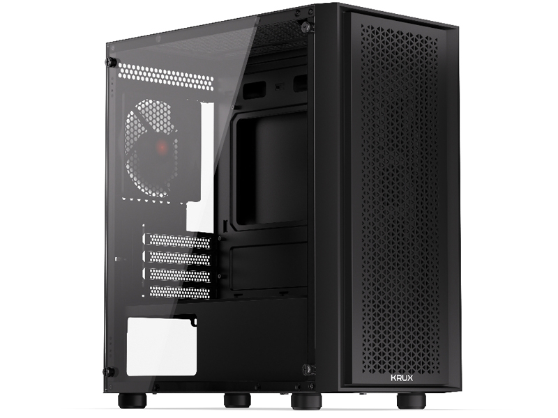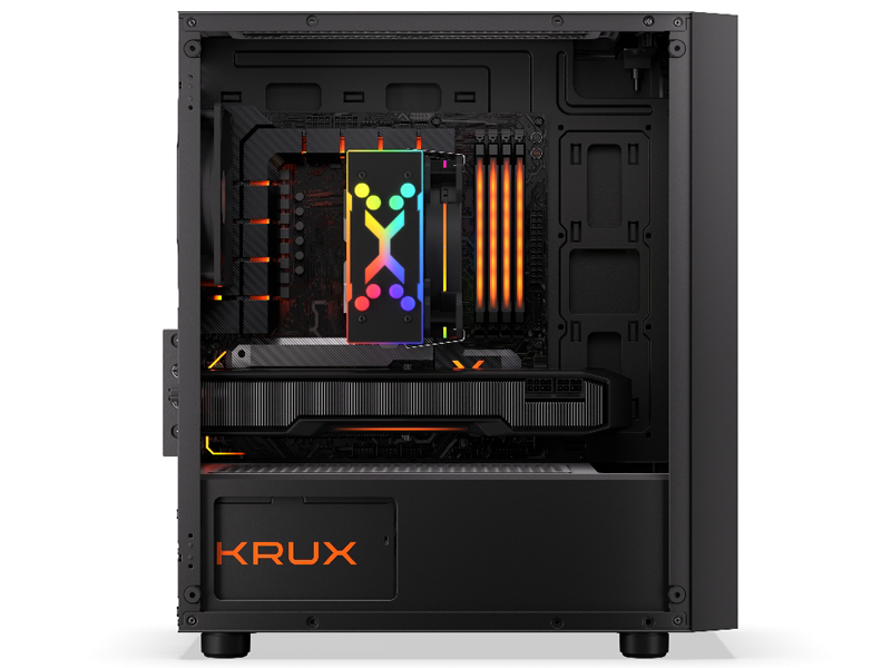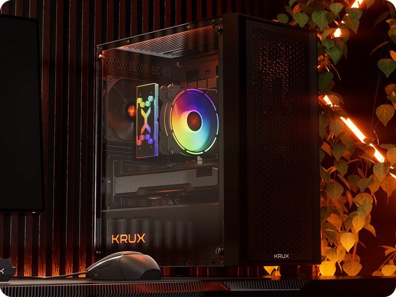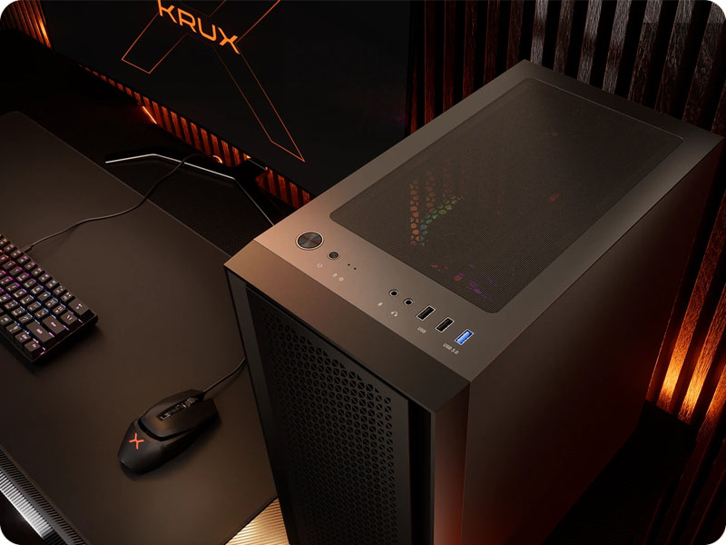 Krux Scor nie dość, że rozmiarowo idealnie wkomponuje się praktycznie w każde stanowisko, to jeszcze jego wewnętrzna przestrzeń została przemyślana tak, by na spokojnie pomieścić wszystkie najpotrzebniejsze komponenty. Znajdzie się tu miejsce na cztery dyski oraz płytę główną w standardzie microATX albo Mini-ITX. Zmieści się tam dosłownie wszystko, czego potrzebujesz, by nie komplikować sobie zbytnio życia.