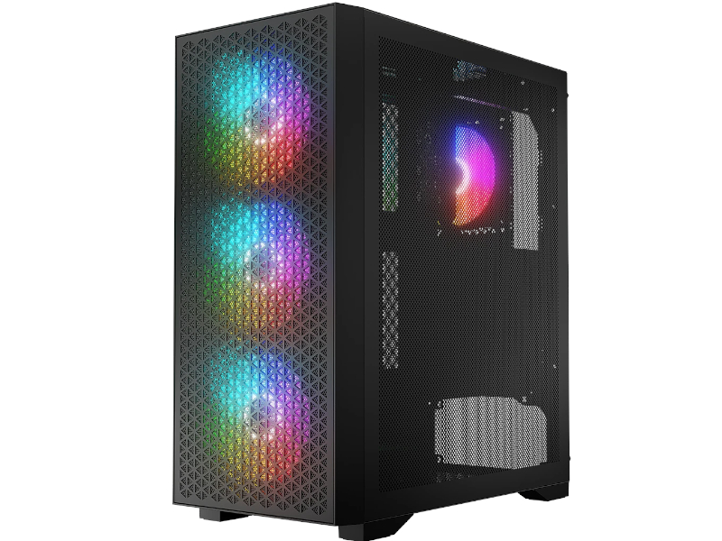 Wszystkie panele zostały zaprojektowane w sposób zapewniający jak najchłodniejszą pracę podzespołów. Oba panele boczne, panel frontowy i górny są perforowane, dzięki czemu ciepłe powietrze generowane przez pracujące wewnątrz komponenty ma gdzie „uciekać”. Całość uzupełniają - zamontowane w standardzie - cztery wentylatory ARGB z kontrolerem, dla jak najlepszego utrzymania niskich temperatur.