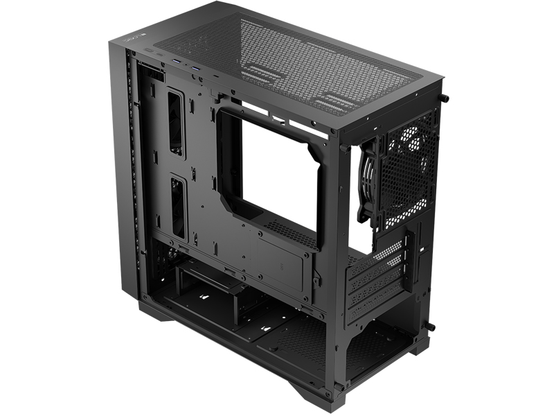Przede wszystkim dzięki temu, że nie ma tu przeszklonego panelu bocznego, dobór gamingowych podzespołów może być jeszcze lepszy – dobrane części nie muszą do siebie pasować „wizualnie” i możesz skupić się wyłącznie na ich wydajności. Całość zalet tej konstrukcji uzupełnia standard Mini ATX – świetnie sprawdzający się w mniejszych pomieszczeniach. Warto też wspomnieć o trzech wentylatorach w standardzie, filtrach przeciwkurzowych, porcie USB 3.2 Gen 2 (USB-C) i dużej ilości miejsca na dyski oraz podzespoły.