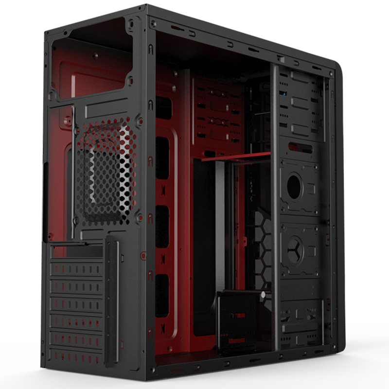 Wnętrze obudowy zostało zaprojektowane z dbałością o wysoką wydajność jednostki roboczej i możliwie jak największą uniwersalność. Umożliwia zastosowanie jednej z czterech rodzajów płyt głównych. Poza Micro ATX, Mini ITX oraz Flex ATX możliwe jest zamontowanie standardowej płyty głównej ATX, co jest dużym atutem pozwalającym na dostosowanie komponentów do rosnących potrzeb lub wymagań użytkownika. Znajdująca się w górnej strefie obudowy zewnętrzna zatoka 5.25”, pozwoli na zamontowanie napędu CD/DVD lub nagrywarki. Wewnątrz obudowy dostępne są trzy kieszenie 2.5”, trzy kieszenie 3.5” (konwertowalne do 2.5”) oraz jedna wewnętrzna kieszeń 5.25”, czyli w sumie aż 7 wewnętrznych zatok do montażu dysków i napędów. Podstawowy system zarządzania kablami i odpowiednio dostosowane wycięcia wewnątrz obudowy ułatwiają instalację komponentów, a przestronne wnętrze pozwala na montaż długich kart graficznych, nawet do 385 mm.