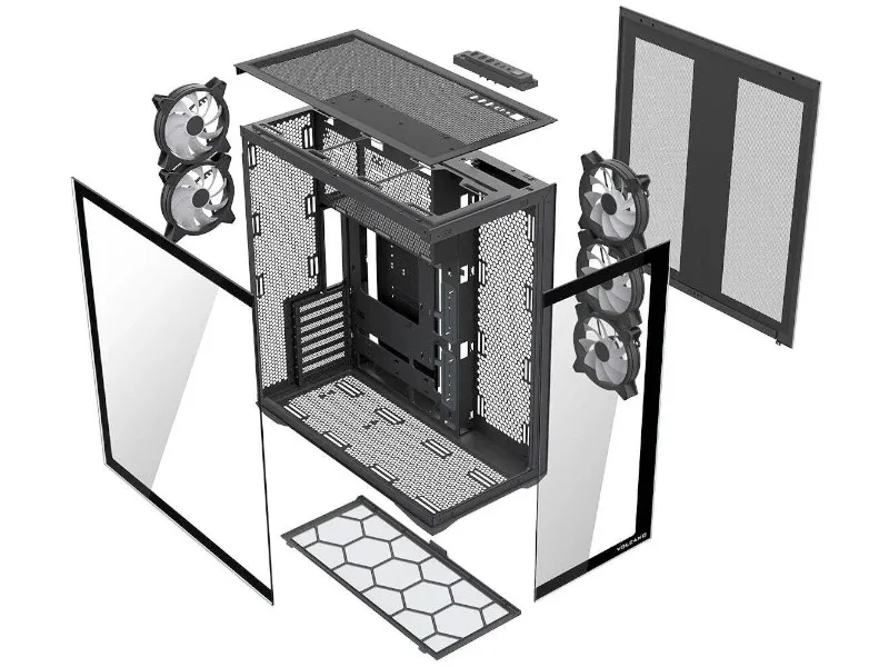 | Zainstalowane wentylatory: | 3x 140 mm (przód) - podświetlenie ARGB, 2x 140 mm (tył) - podświetlenie ARGB |