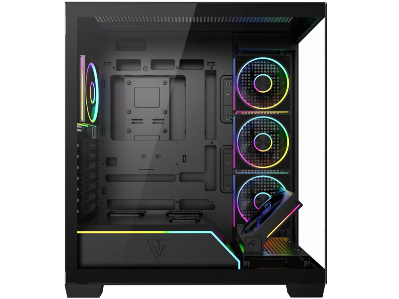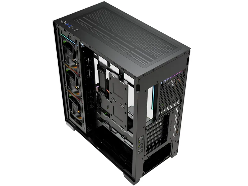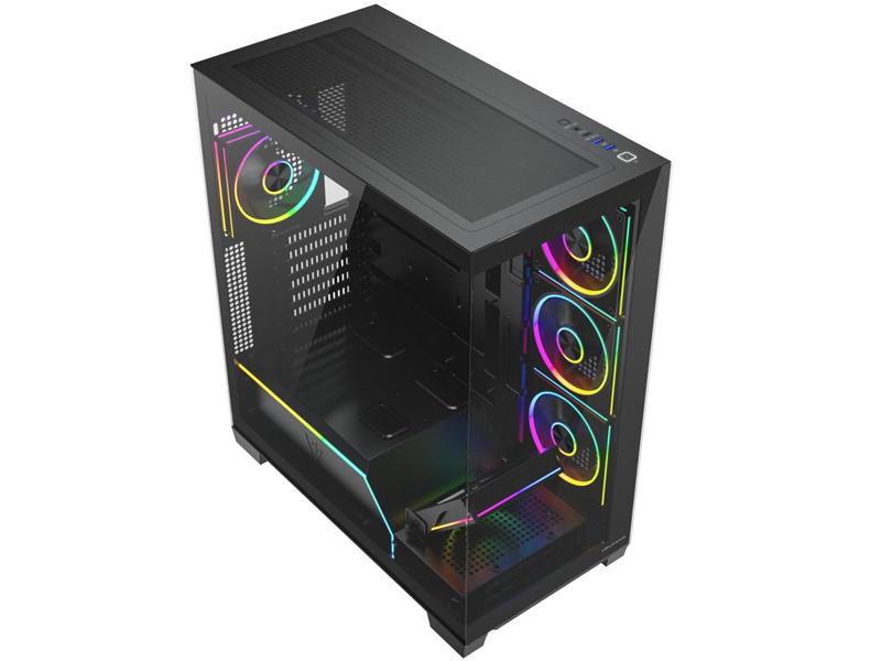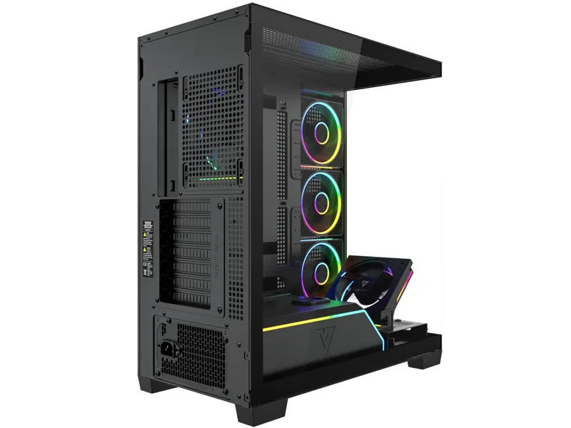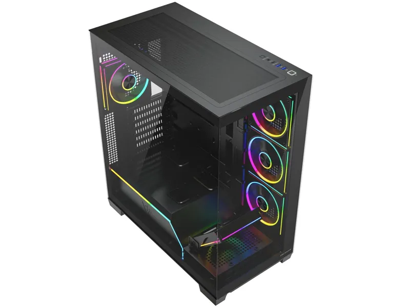 Model Stellar Plus ARGB 5F oferuje fabrycznie zainstalowane trzy wentylatory 120 mm, zapewniające wydajne i ciche chłodzenie już od pierwszego uruchomienia. Możliwość montażu łącznie pięciu wentylatorów oraz kompatybilność z radiatorami 120/240/280/360 mm pozwala budować rozbudowane systemy chłodzenia wodnego. Dzięki zintegrowanemu podświetleniu ARGB całość zyskuje efektowny, nowoczesny wygląd idealny do gamingowego stanowiska. Przemyślana cyrkulacja powietrza gwarantuje stabilną pracę nawet najmocniejszych komponentów. To obudowa, która łączy funkcjonalność z widowiskowym stylem.
