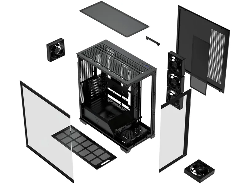 Zintegrowane podświetlenie Wydzielona komora na zasilacz Przezroczysty panel boczny |