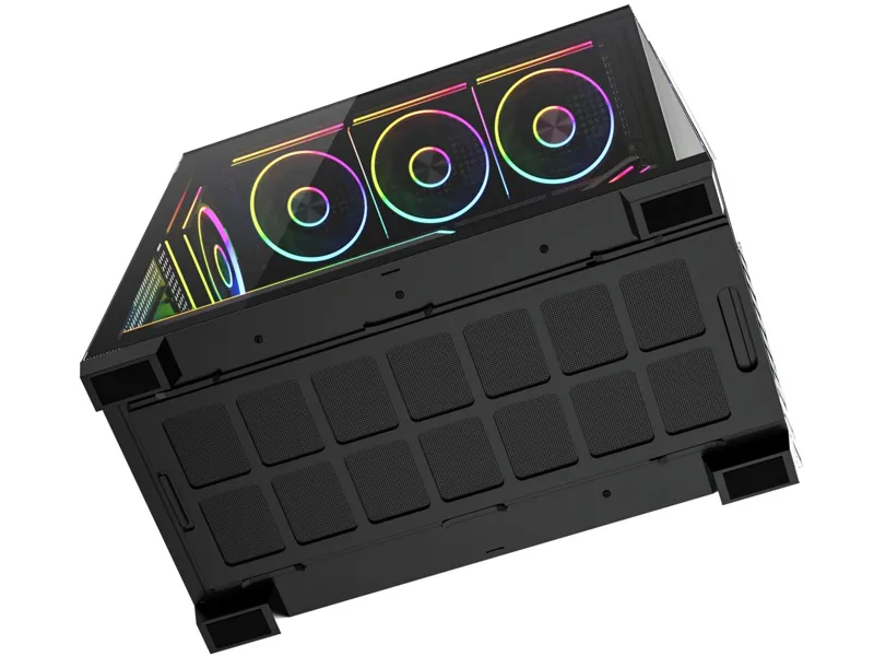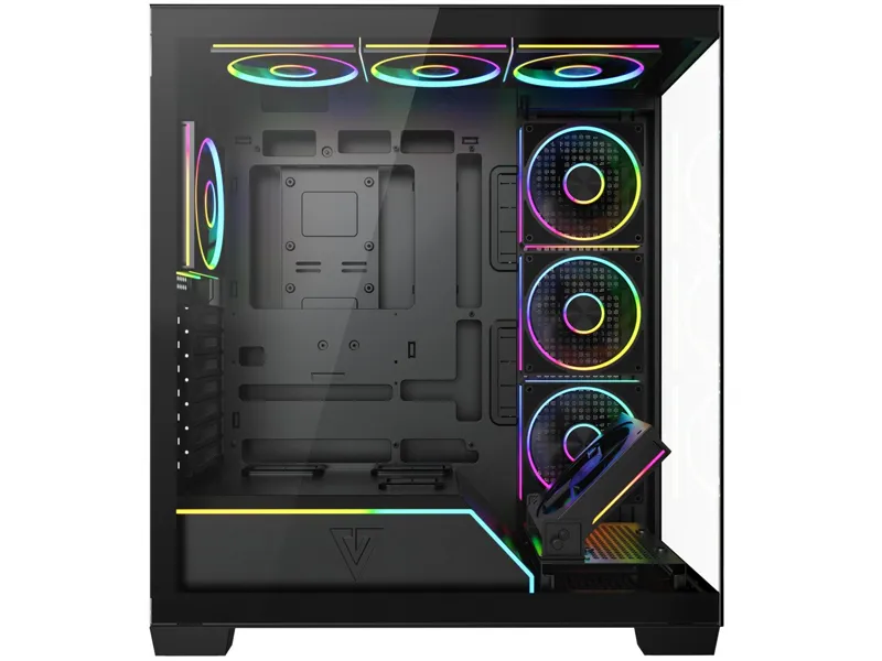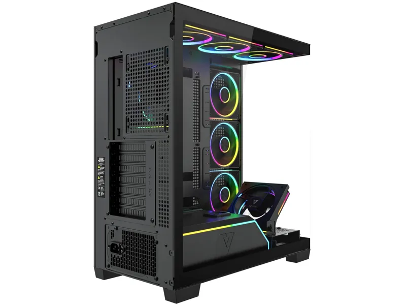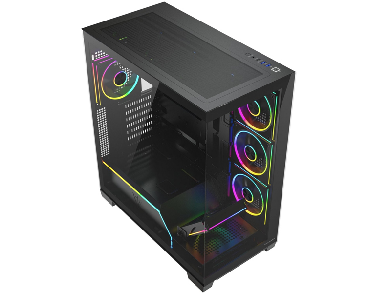 Model Stellar Plus ARGB 8F oferuje fabrycznie zainstalowane osiem wentylatorów 120 mm, zapewniające wydajne i ciche chłodzenie już od pierwszego uruchomienia. Kompatybilność z radiatorami 120/240/280/360 mm pozwala budować rozbudowane systemy chłodzenia wodnego. Dzięki zintegrowanemu podświetleniu ARGB całość zyskuje efektowny, nowoczesny wygląd idealny do gamingowego stanowiska. Przemyślana cyrkulacja powietrza gwarantuje stabilną pracę nawet najmocniejszych komponentów. To obudowa, która łączy funkcjonalność z widowiskowym stylem.