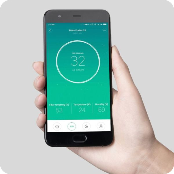 Kontroluj swój oczyszczacz z dowolnego miejsca za pomocą aplikacji Mi Home. Sprawdź jakość powietrza, temperaturę i wilgotność, wyreguluj siłę wentylatora oraz ustaw zegar, aby włączyć oczyszczacz. Aplikacja automatycznie powiadamia również użytkownika o konieczności wymiany filtra.