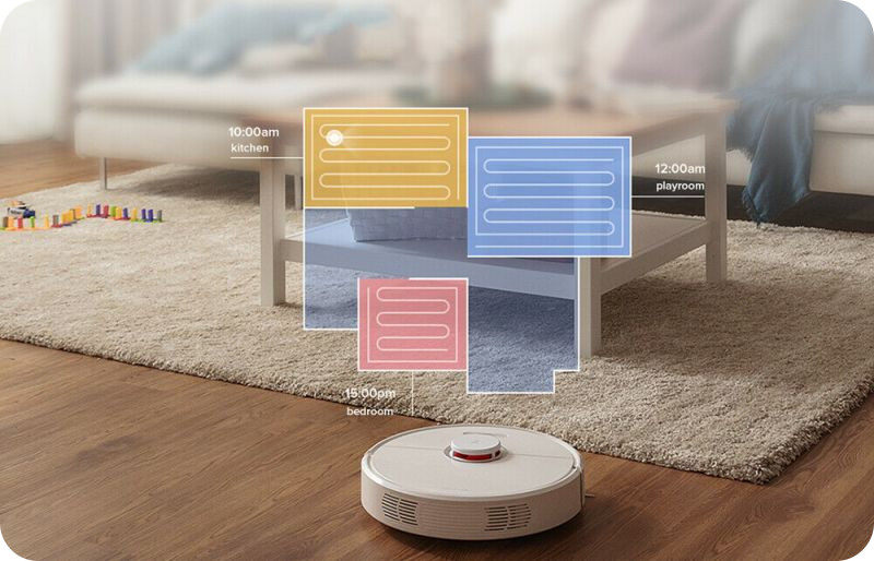 Dokładny dalmierz laserowy S6 obraca się z prędkością 300 obr./min, skanując pokoje. Dane są następnie przesyłane za pomocą niestandardowego algorytmu w celu uzyskania dokładnej w 98% mapy podłogowej. Teraz możesz zaplanować czyszczenie pojedynczego pokoju, wielu pokoi, a nawet całego domu. Sprzątanie nigdy nie było tak łatwe.