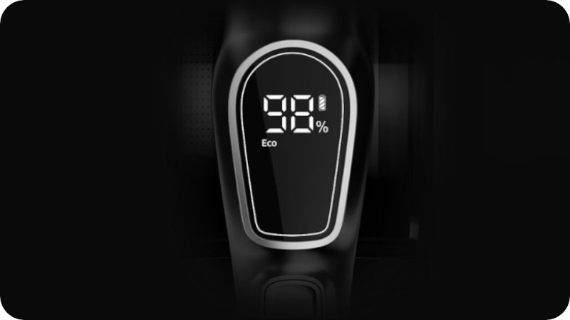 Urządzenie zostało wyposażone w czytelny wyświetlacz, który dostarcza ci wszystkie dane i parametry dotyczące pracy urządzenia. Pokazuje takie dane jak aktualny tryb, a także poziom naładowania baterii. W przypadku gdy poziom baterii osiąga 10 % odpowieni wskaźnik zmieni kolor wyświetlacza na czerwony aby poinformować cię o aktualnym stanie urządzenia. Wszystkie te funkcje pozwolą zaplanować ci sprzątanie tak aby jak najefektywniej posprzątać daną przestrzeń