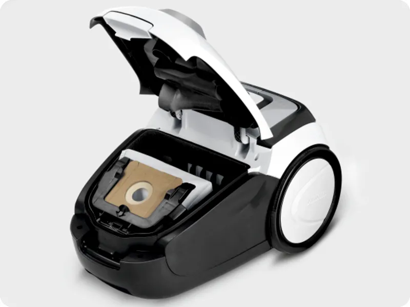 VC 2 został wyposażony w filtr HEPA 13, który skutecznie zatrzymuje pyłki, kurz i alergeny. Dzięki temu powietrze wydmuchiwane z odkurzacza jest czyste i zdrowe dla domowników. System worków filtrujących umożliwia higieniczną wymianę bez kontaktu z kurzem. Odkurzacz jest więc idealny dla osób cierpiących na alergie lub z małymi dziećmi. Praktyczne przechowywanie akcesoriów w samym urządzeniu zapewnia, że wszystkie końcówki są zawsze pod ręką.