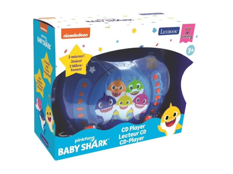 Odtwarzacz płyt CD dla dzieci został ozdobiony grafiką popularnych postaci z serii Baby Shark. Wysokiej jakości wykonanie oraz grafika sprawiają, że urządzenie będzie doskonale pasować do dziecięcego pokoju. Zastosowana rączka umożliwia wygodne przenoszenie. Dodatkowo możliwe jest odtwarzanie płyt w formacie CD, CD-R oraz CD-RW i programowanie i powtarzanie utworów. Za pomocą wejścia AUX podlączysz telefon, odtwarzacz mp3 lub inne urządzenia. Nie zapomniano również o wyposażenie tego modelu w moduł Bluetooth, co pozwala na bezprewodowe puszczanie piosenek z dowolnego urządzenia mobilnego wyposażonego w nadajnik Bluetooth.
