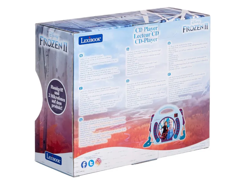 Odtwarzacz płyt CD dla dzieci został ozdobiony grafiką popularnych postaci z serii filmowej Frozen. Wysokiej jakości wykonanie oraz grafika sprawiają, że urządzenie będzie doskonale pasować do dziecięcego pokoju. Zastosowana rączka umożliwia wygodne przenoszenie. Dodatkowo możliwe jest odtwarzanie płyt w formacie CD, CD-R oraz CD-RW i programowanie i powtarzanie utworów. Za pomocą wejścia AUX podlączysz telefon, odtwarzacz mp3 lub inne urządzenia. Nie zapomniano również o wyposażenie tego modelu w moduł Bluetooth, co pozwala na bezprewodowe puszczanie piosenek z dowolnego urządzenia mobilnego wyposażonego w nadajnik Bluetooth.