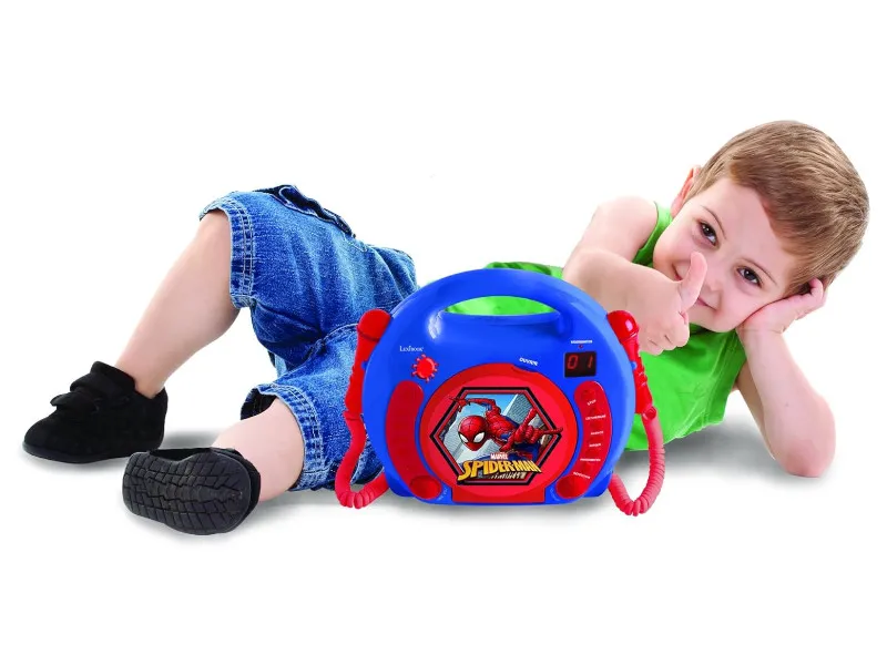 Odtwarzacz płyt CD dla dzieci został ozdobiony grafiką popularnych postaci z popularnej serii komksów Spider-Man. Wysokiej jakości wykonanie oraz grafika sprawiają, że urządzenie będzie doskonale pasować do dziecięcego pokoju. Zastosowana rączka umożliwia wygodne przenoszenie. Dodatkowo możliwe jest odtwarzanie płyt w formacie CD, CD-R oraz CD-RW i programowanie i powtarzanie utworów. Za pomocą wejścia AUX podlączysz telefon, odtwarzacz mp3 lub inne urządzenia. Nie zapomniano również o wyposażenie tego modelu w moduł Bluetooth, co pozwala na bezprewodowe puszczanie piosenek z dowolnego urządzenia mobilnego wyposażonego w nadajnik Bluetooth.