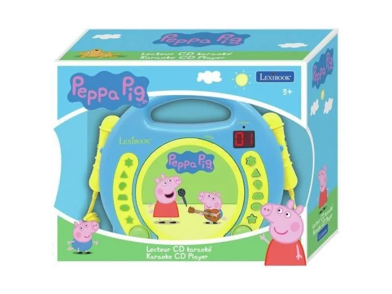Odtwarzacz płyt CD dla dzieci został ozdobiony grafiką popularnych postaci z serii Świnka Peppa. Wysokiej jakości wykonanie oraz grafika sprawiają, że urządzenie będzie doskonale pasować do dziecięcego pokoju. Zastosowana rączka umożliwia wygodne przenoszenie. Dodatkowo możliwe jest odtwarzanie płyt w formacie CD, CD-R oraz CD-RW i programowanie i powtarzanie utworów. Za pomocą wejścia AUX podlączysz telefon, odtwarzacz mp3 lub inne urządzenia. Nie zapomniano również o wyposażenie tego modelu w moduł Bluetooth, co pozwala na bezprewodowe puszczanie piosenek z dowolnego urządzenia mobilnego wyposażonego w nadajnik Bluetooth.