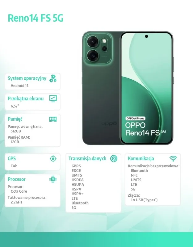 Oppo Smartfon Reno14 FS 5G 12/ 512GB Zielony CPH2743