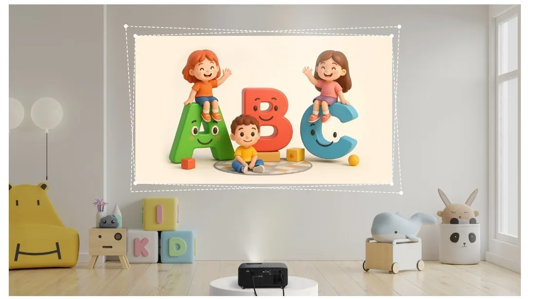- Projektor jest również elastyczny w instalacji: 3500 lumenów jasności zapewnia żywy obraz w każdym pomieszczeniu, a funkcje takie jak projekcja 360°, automatyczna korekcja pionowa keystone i korekcja czterech narożników pozwalają stworzyć prawdziwe kino domowe w dowolnym miejscu.
