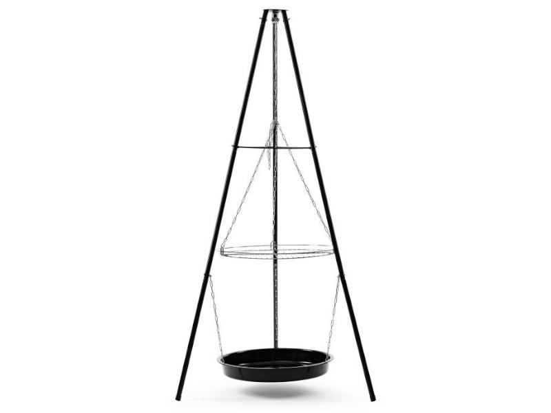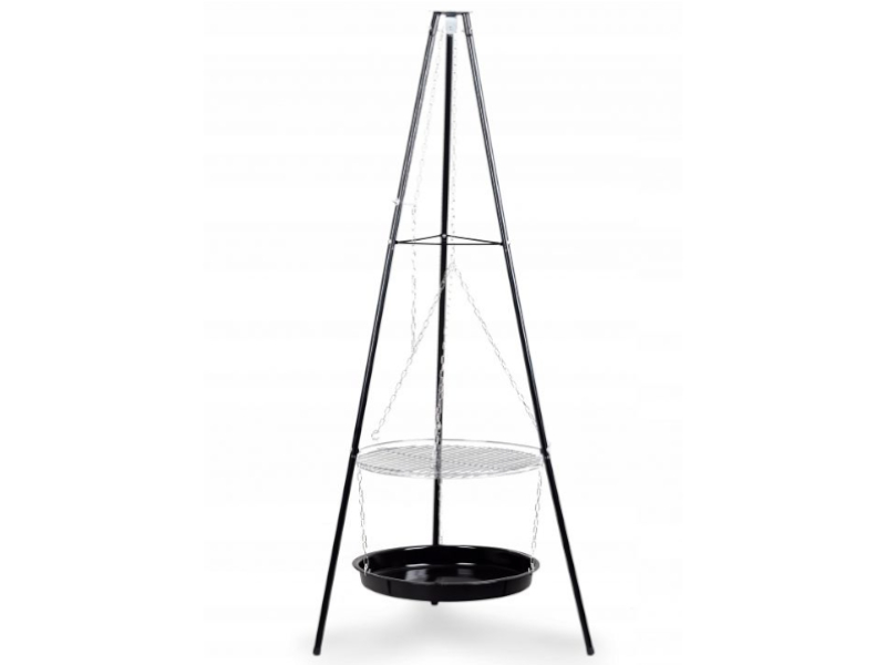 Palenisko ogrodowe cechuję się stabilną metalową konstrukcją, która zapewnia bezpieczeństwo podczas przyrządzania posiłków. Jego budowa pozwala na grillowanie bezpośrednio nad ogniskiem lub nad dołączonym paleniskiem. Dużą powierzchnie grillowania zawdzięczamy chromowanemu rusztowi o średnicy 45cm. Wysokość rusztu od paleniska regulowana jest za pomocą łańcuszka.