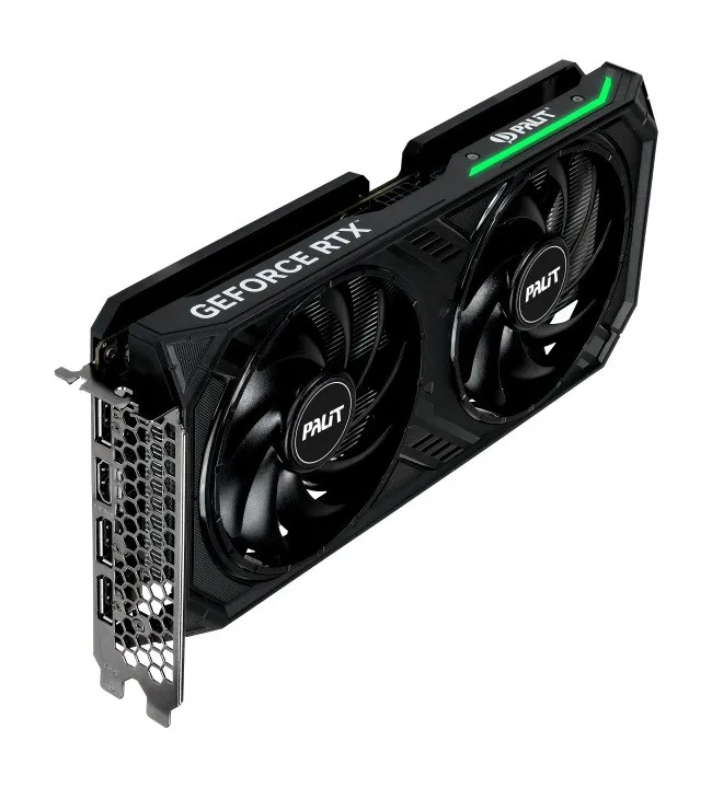 GeForce RTX 4060 Dual jest pokryty eleganckim, czarnym wykończeniem. Oferuje konkurencyjne chłodzenie oraz wydajność akustyczną dzięki dwóm dużym wiatrakom 95 mm, oraz szerokiemu otworowi na tylnej płycie. Subtelne podświetlenie RGB z tyłu karty, dodaje PC stylowego charakteru, nie rozpraszając przy tym zbytnio uwagi.