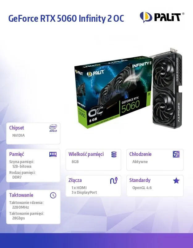 Palit Karta graficzna GeForce RTX 5060 INFINITY 2 OC 8GB GDDR7 128bit 3DP/HDMI